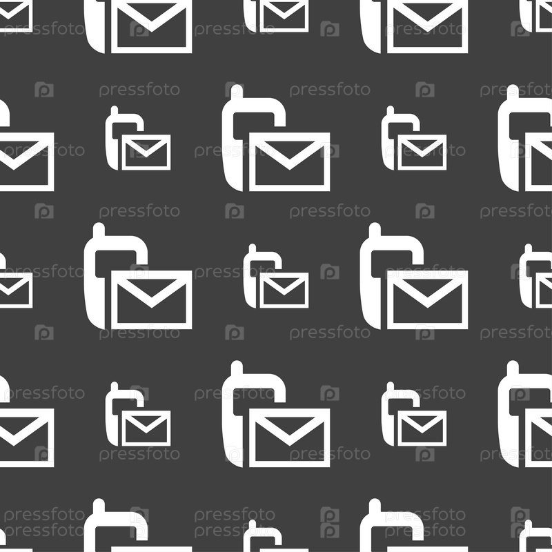 Значок Почта. Символ конверта. СМС-сообщения знак sms. Бесшовный узор на сером фоне. Вектор