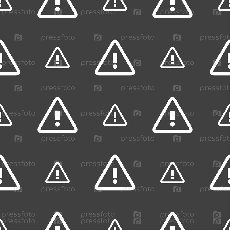 Внимание внимание знак значок. Восклицательный знак. Символ предупреждения об опасности. Бесшовный узор на сером фоне. Вектор