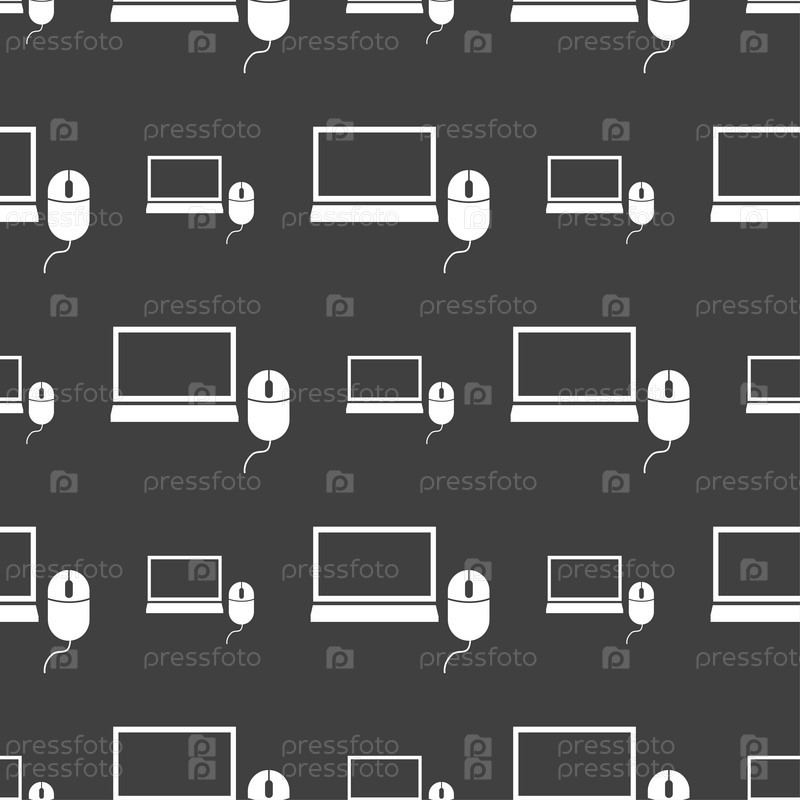 Широкоэкранный монитор компьютера, знак значок мыши. Бесшовный узор на сером фоне. Вектор