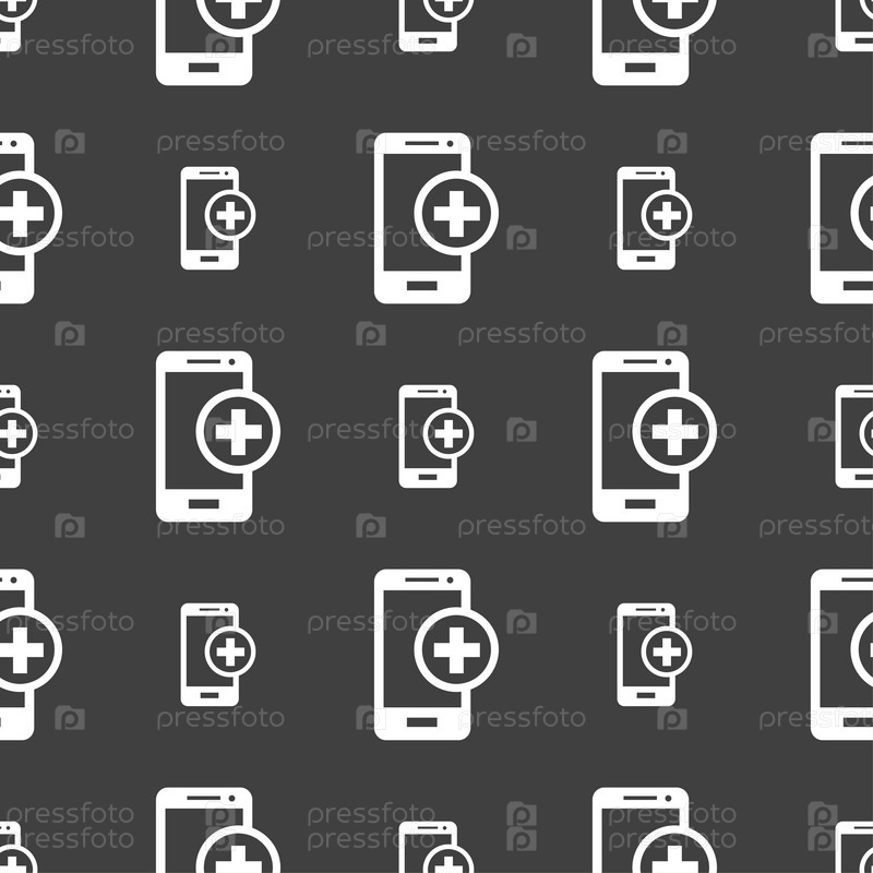 Мобильные устройства подписи значка. с символом плюс. Бесшовный узор на сером фоне. Вектор