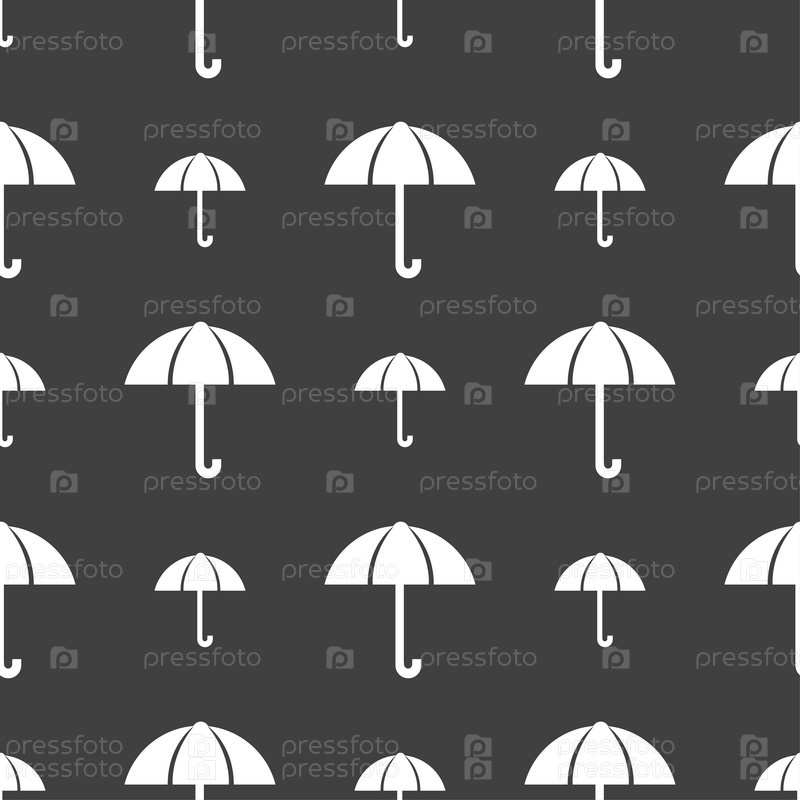 Зонтик знак значок. Символ защиты дождя. Бесшовный узор на сером фоне. Вектор
