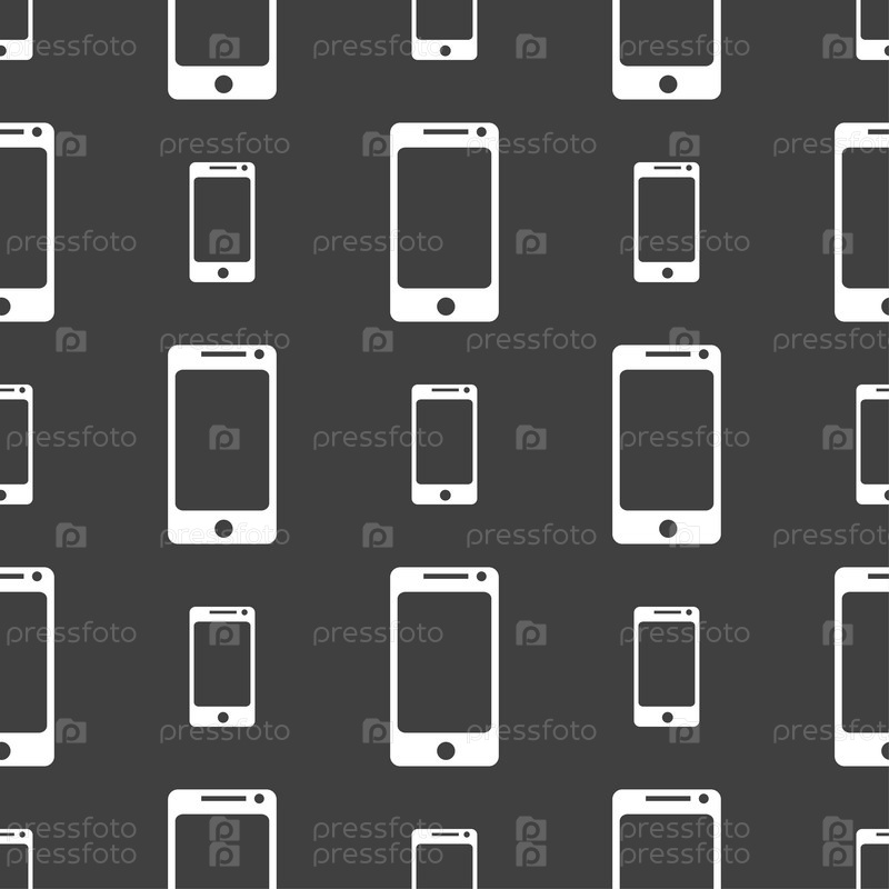 Знак смартфона значок. Символ поддержки. Центр вызовов. Бесшовный рисунок на сером фоне. Вектор