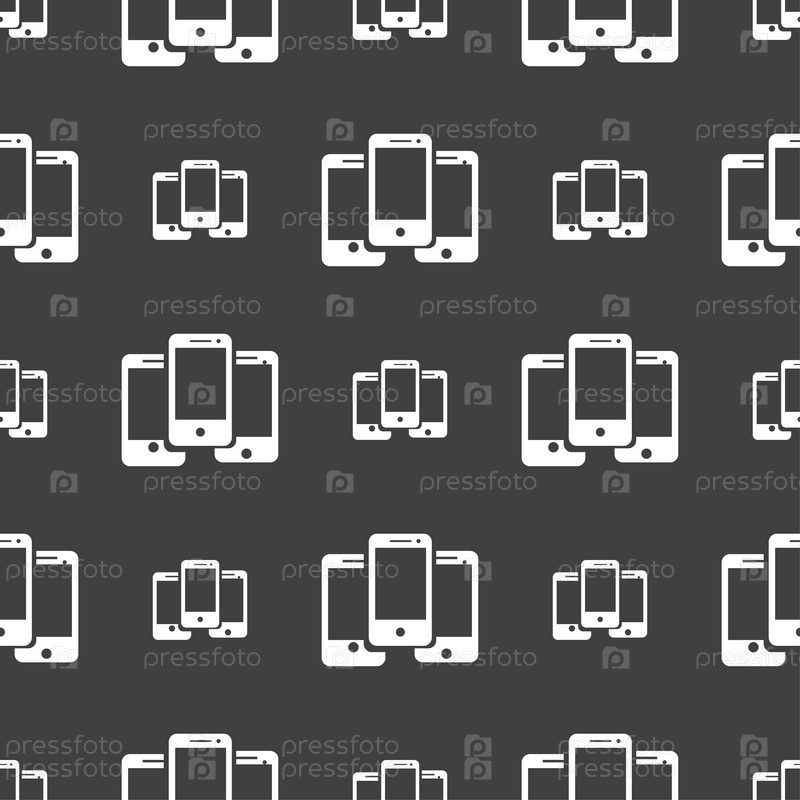 Знак смартфона значок. Символ поддержки. Центр вызовов. Бесшовный рисунок на сером фоне. Вектор