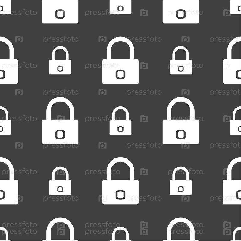 Значок замка знак. Локера символ. Бесшовный узор на сером фоне. Вектор
