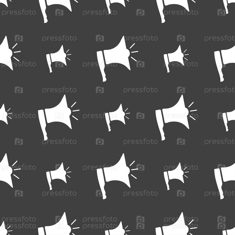 Мегафон вскоре значок. Символ громкоговорителя. Бесшовный узор на сером фоне. Вектор