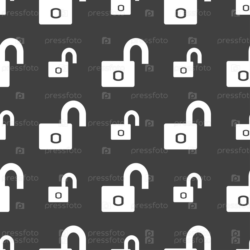Значок замка знак. Локера символ. Бесшовный узор на сером фоне. Вектор