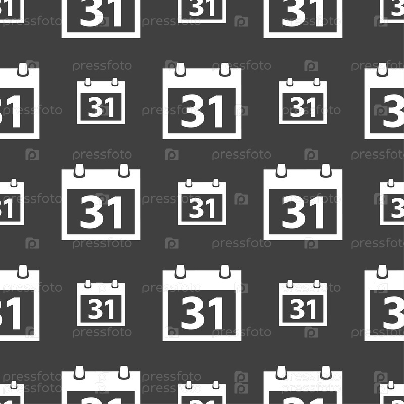 Значок знак календаря. символ месяце 31 день. Кнопка Дата. Бесшовный узор на сером фоне. Вектор