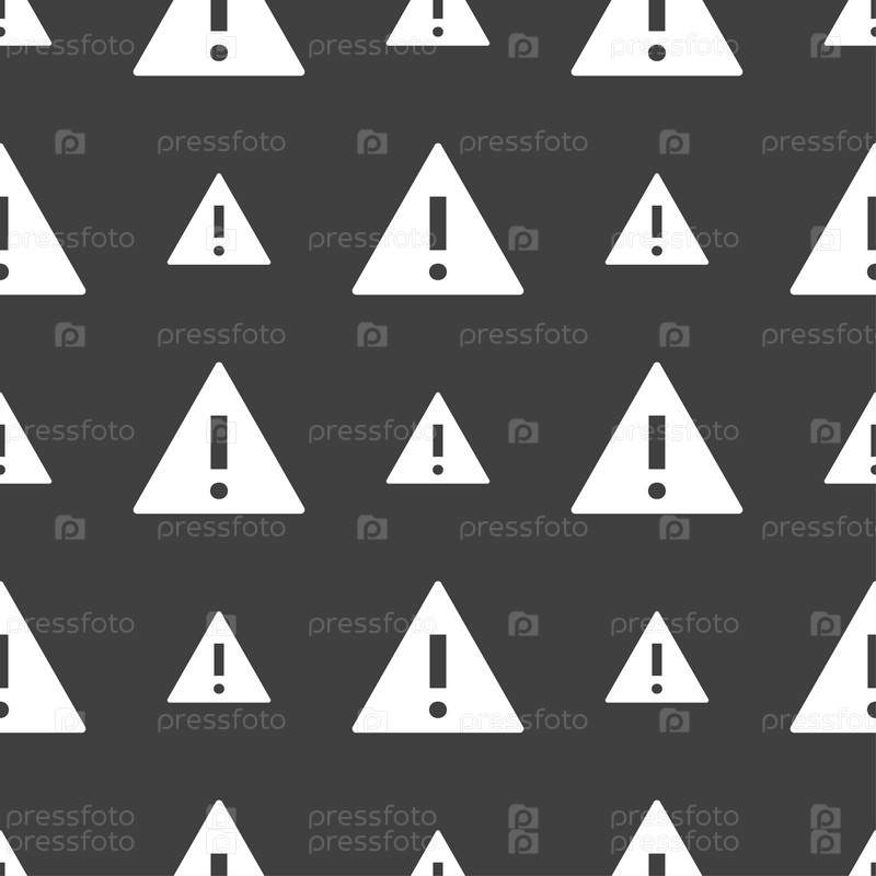 Изображение знака внимания. Восклицательный знак. Символ предупреждения об опасности. Бесшовный узор на сером фоне. Вектор