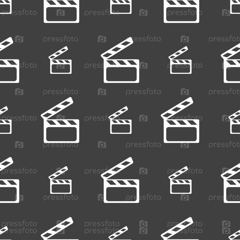 Кино Клаппер знак значок. Видео камеры символ. Бесшовный узор на сером фоне. Вектор