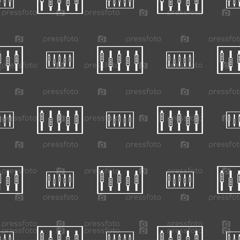 Винилы Dj mix ручки и кнопки, уровень значка. Бесшовный шаблон на сером фоне. Вектор
