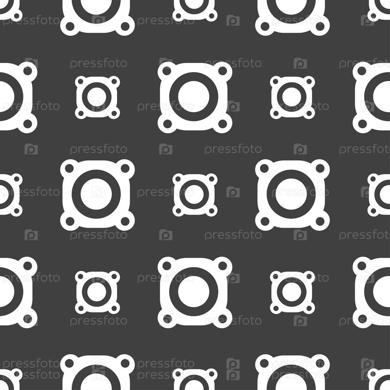 Значок знак громкости динамика. Символ звука. Бесшовный узор на сером фоне. Вектор