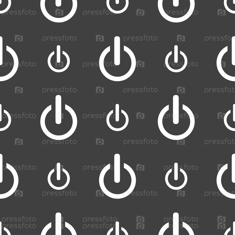 Электропитание знак. Символ переключателя. Бесшовный узор на сером фоне. Вектор