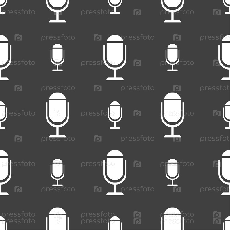 Значок микрофона. Символ динамика. Живая музыка знак. Бесшовный узор на сером фоне. Вектор