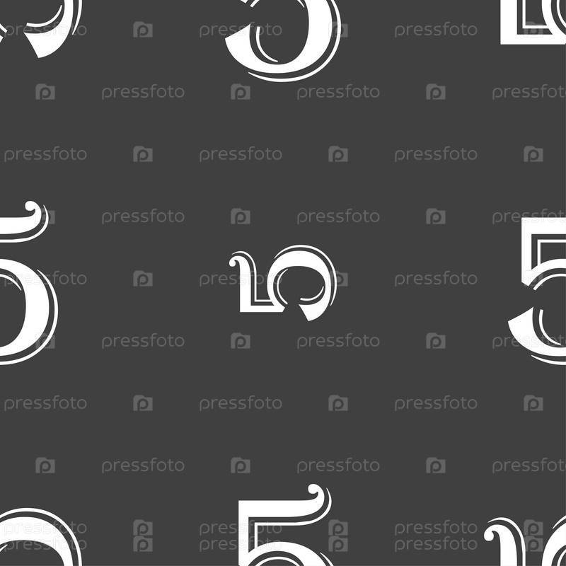 Номер пять. Бесшовный узор на сером фоне. Вектор