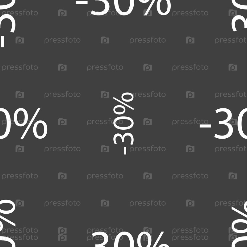 30% скидка. Бесшовный узор на сером фоне. Вектор