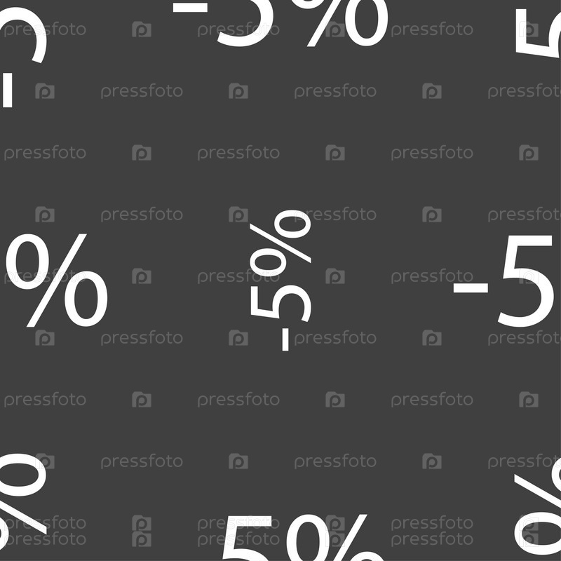 5% скидка. Бесшовный узор на сером фоне. Вектор