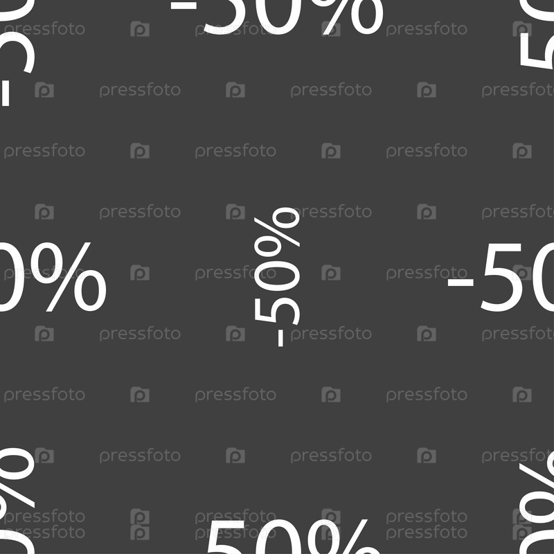 50% скидка. Бесшовный узор на сером фоне. Вектор