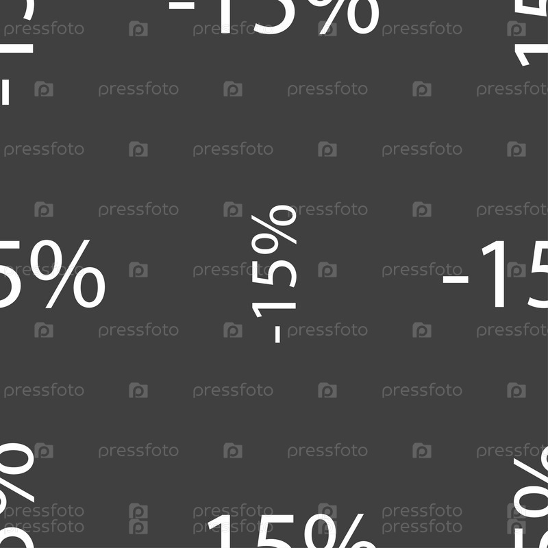 15% скидка. Бесшовный узор на сером фоне. Вектор