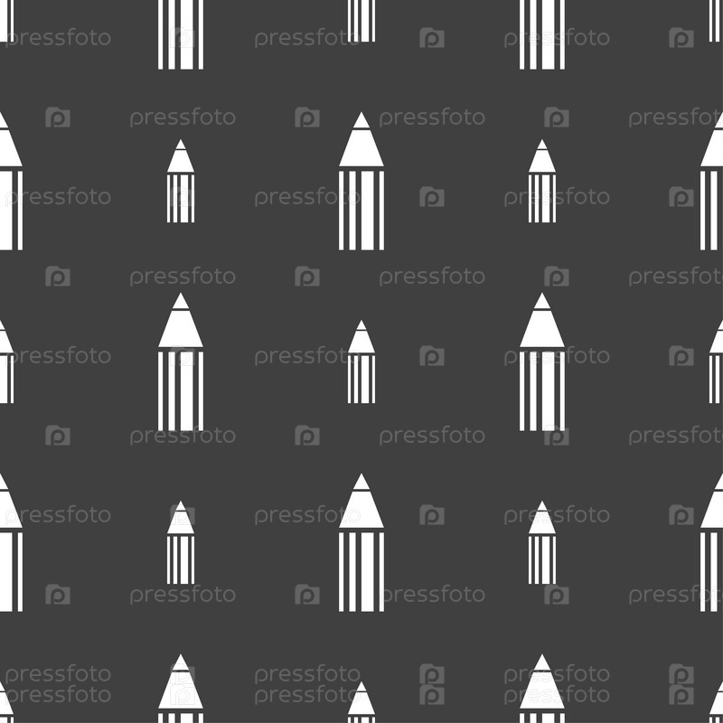 Значок карандаша. Бесшовный узор на сером фоне. Вектор