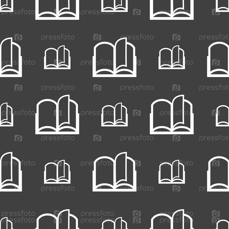 Открытая книга символ. Бесшовный узор на сером фоне. Вектор