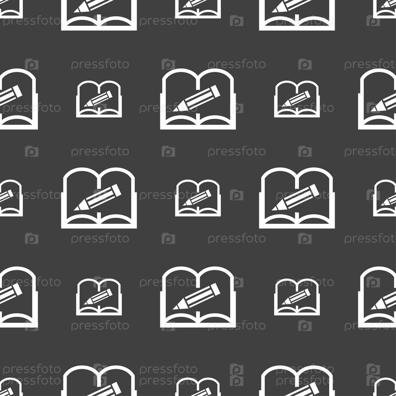 Открытая книга символ. Бесшовный узор на сером фоне. Вектор