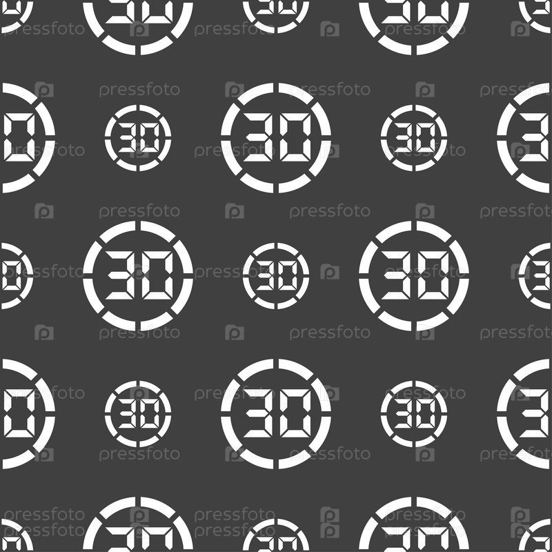 Значок секундомера. Бесшовный узор на сером фоне. Вектор