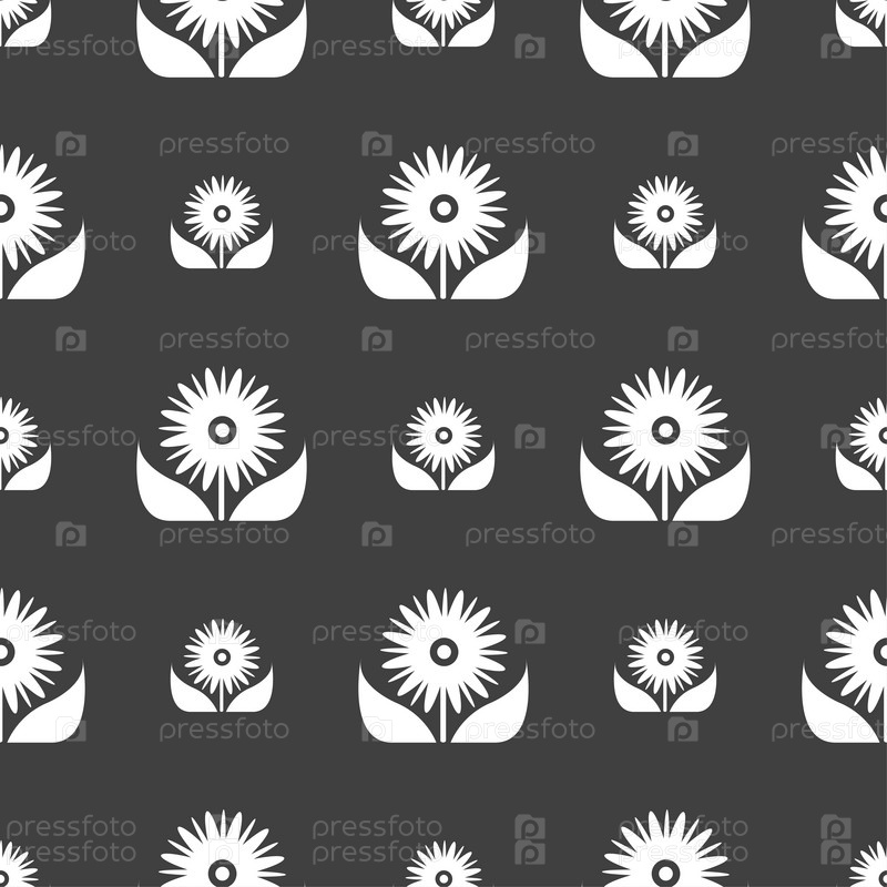 Букет цветов с лепестками. Бесшовный узор на сером фоне. Вектор