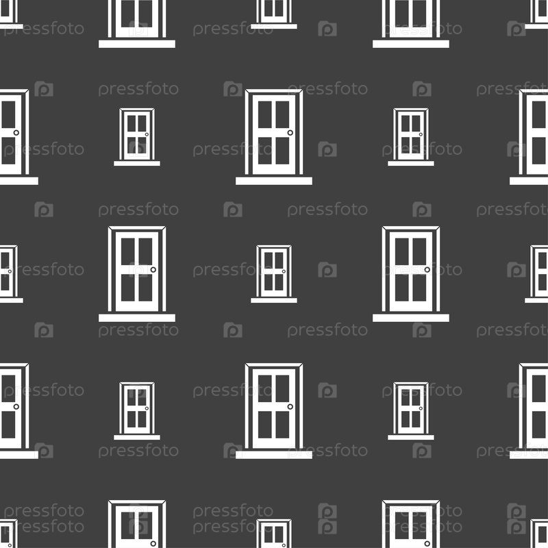Дверь. Бесшовный узор на сером фоне. Вектор