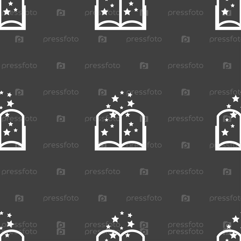 Магическая книга символ. Бесшовный узор на сером фоне. Вектор