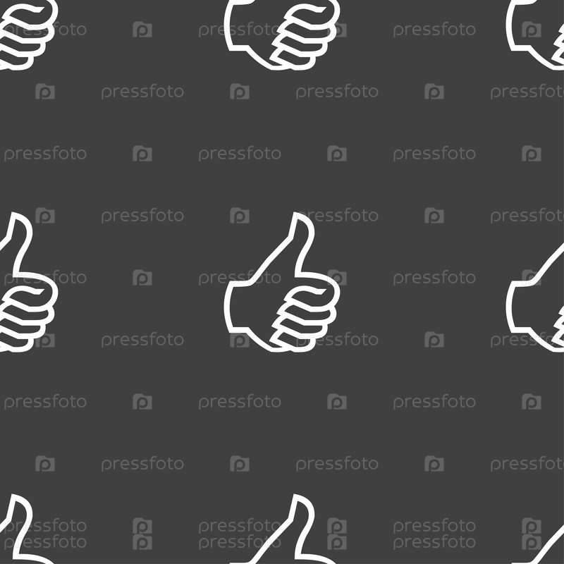 Палец руки вверх. Бесшовный узор на сером фоне. Вектор