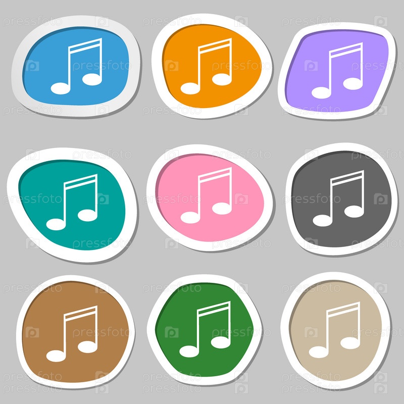 Музыка. Разноцветные бумажные наклейки. Вектор