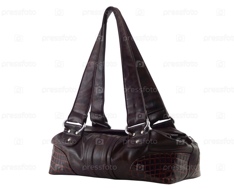 Коричневая женская сумочка на белом фоне