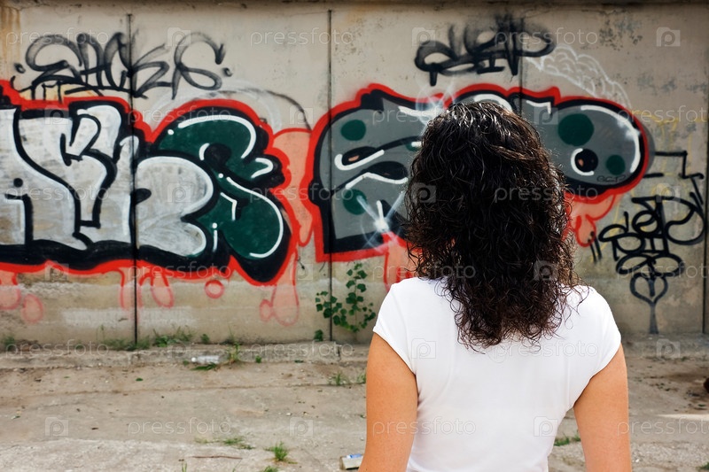 Девушка возле стены с граффити