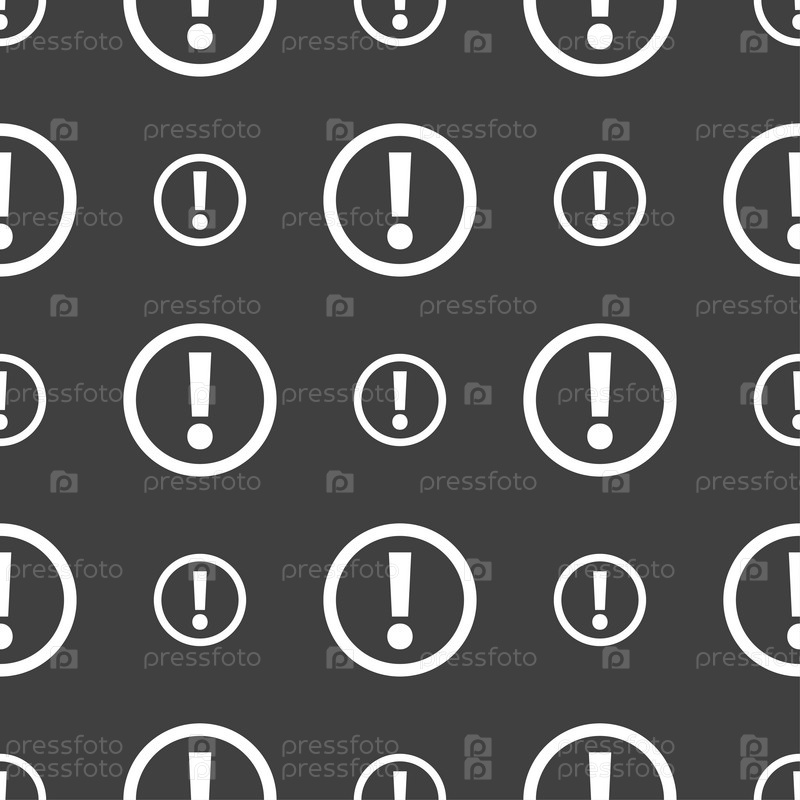 Изображение знака внимания. Восклицательный знак. Символ предупреждения об опасности. Бесшовный узор на сером фоне. Вектор