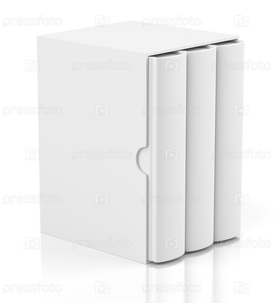 Три книги в картонные коробки на белом