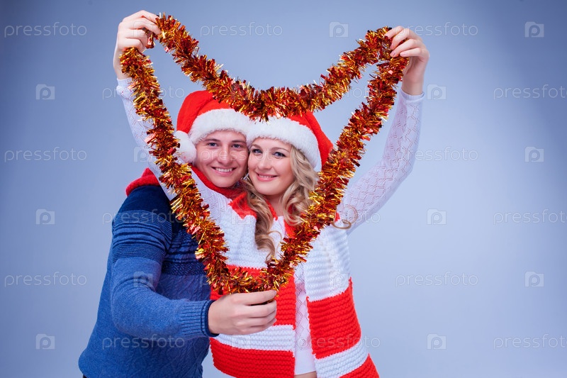 Прекрасная пара с рождественские гирлянды