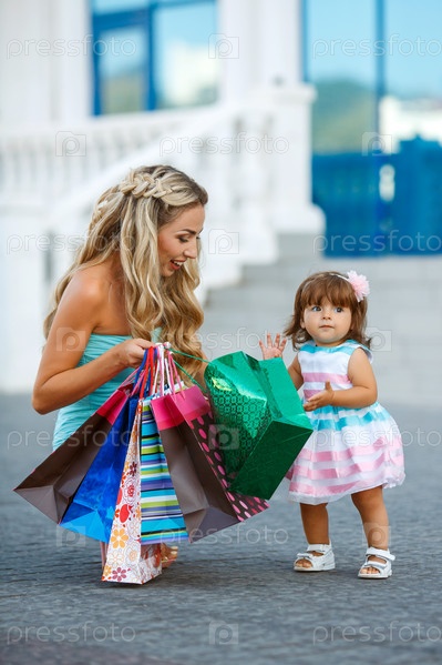 Мама с дочкой после шопинга
