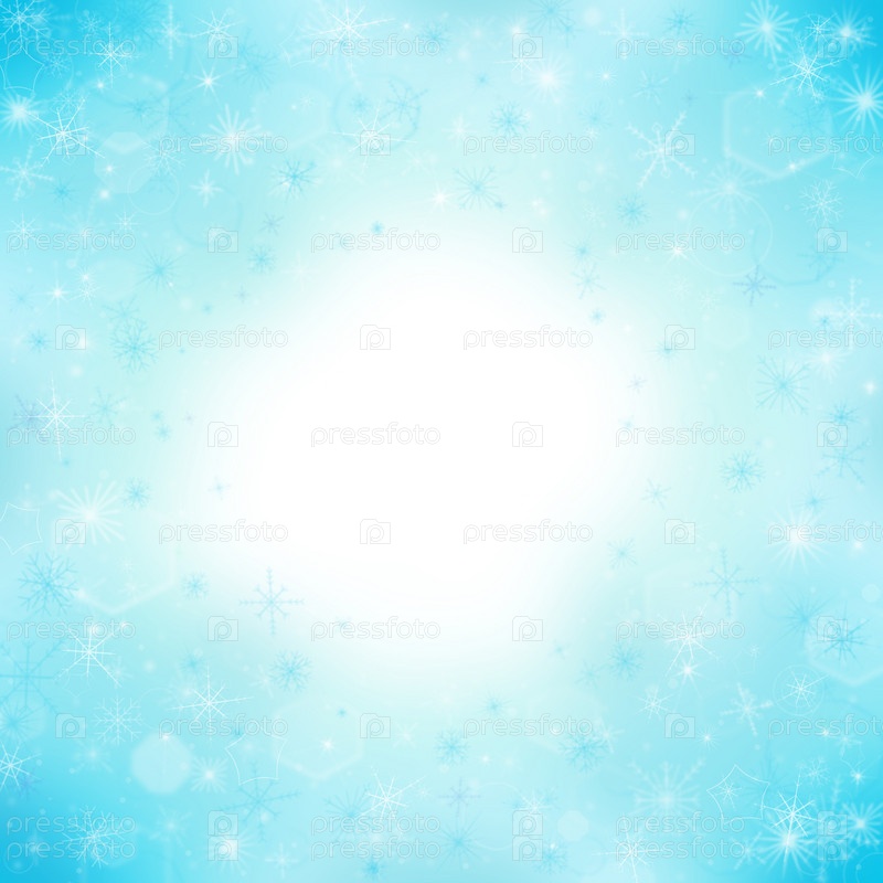 Абстрактный синий фон с сиянием в центре и снежинками, формат eps10
