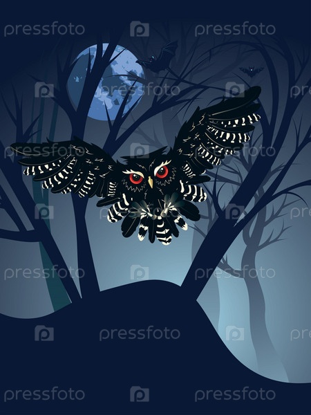 Сова в ночном лесу