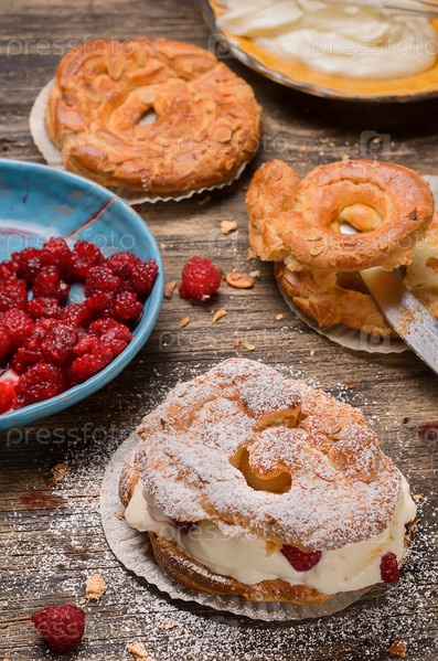 Заварное пирожное с кремом и ягодами