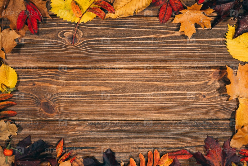 Фон с деревянным столом и осенних листьев