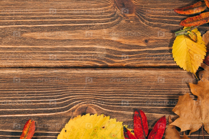 Фон с деревянным столом и осенних листьев