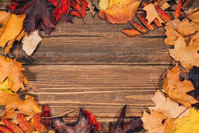 Фон с деревянным столом и осенних листьев