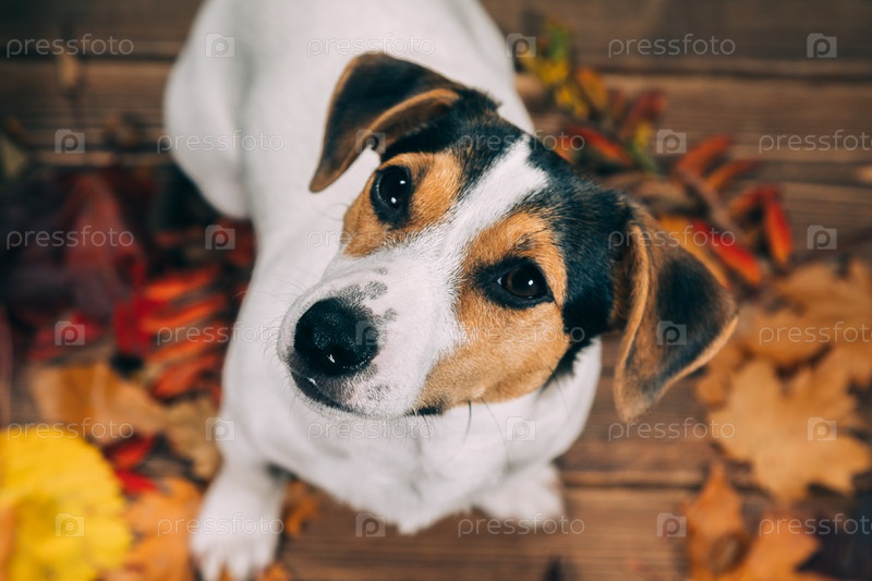 Джек Рассел сидит и смотрит в камеру