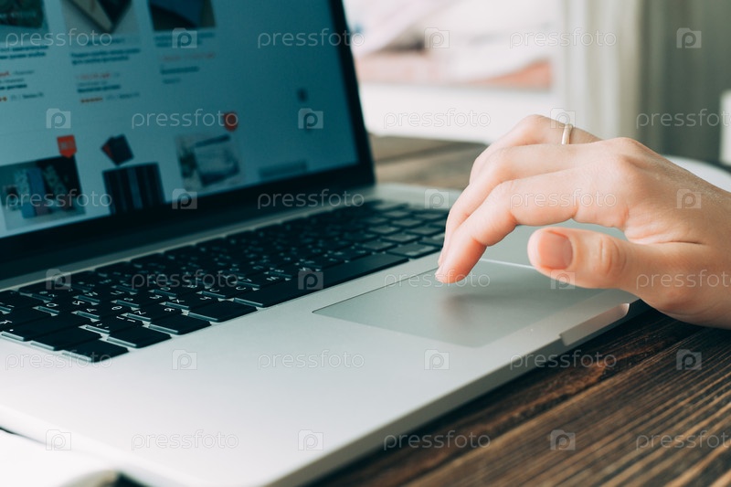 Женщина с ноутбуком на деревянный стол