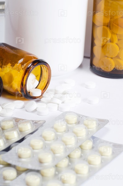 Таблетки на белом фоне