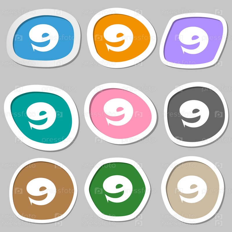 Номер девять значок знак. Разноцветные бумажные наклейки. Вектор