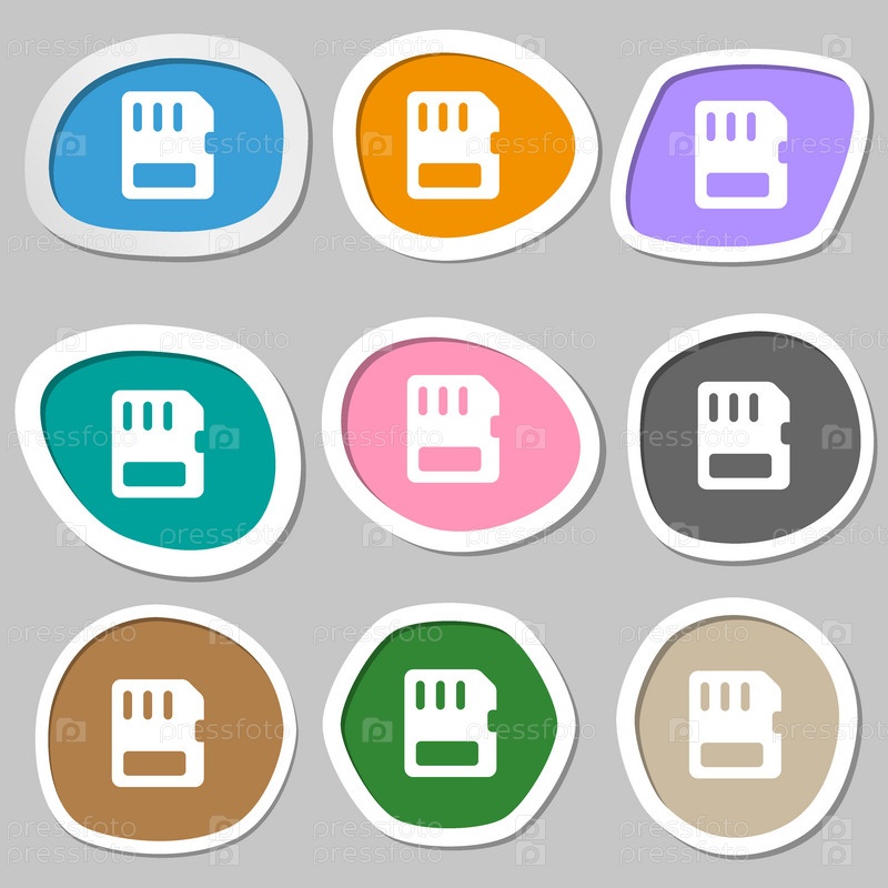Компактный символы значок карты памяти. Разноцветные бумажные наклейки. Вектор
