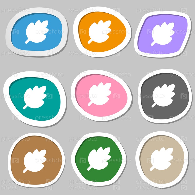 Лист, свежий натуральный продукт значок символов. Разноцветные бумажные наклейки. Вектор