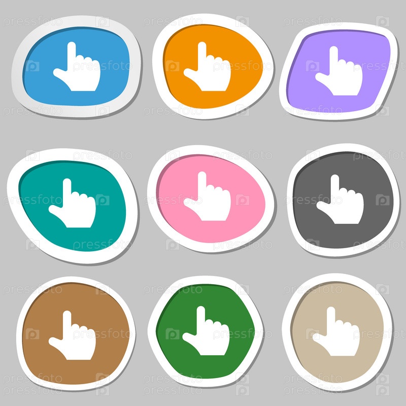 Указывая символы значок руки. Разноцветные бумажные наклейки. Вектор